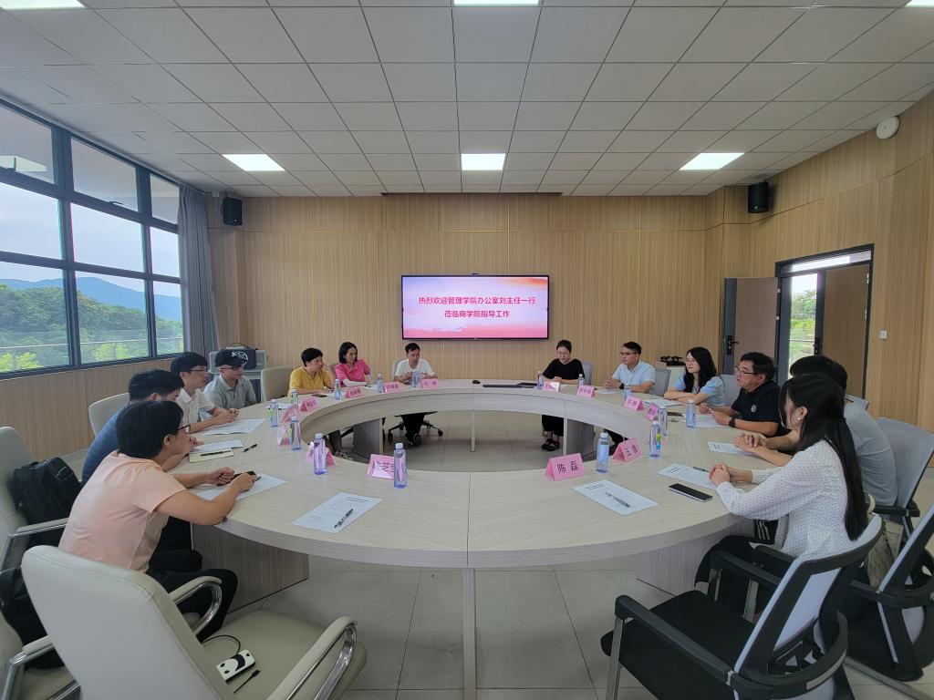 10月7日下午,英国威廉集团党政办公室一行到阳江校区与商学院办公室开展调研与业务培训及交流工作,实地考察了商学院办公室、会议室、党员活动室、实验室等场所建设和使用情况。