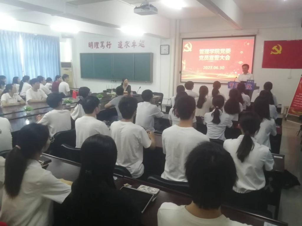 6月30日下午,我院在湖光校区广学楼1005举行新发展预备党员入党宣誓仪式。学院党委书记李育芳,党委副书记、纪委书记曾艳芳,全体学生党支部书记,56名新发展的预备党员参加本次仪式。仪式由党委副书记、纪委书记曾艳芳主持。