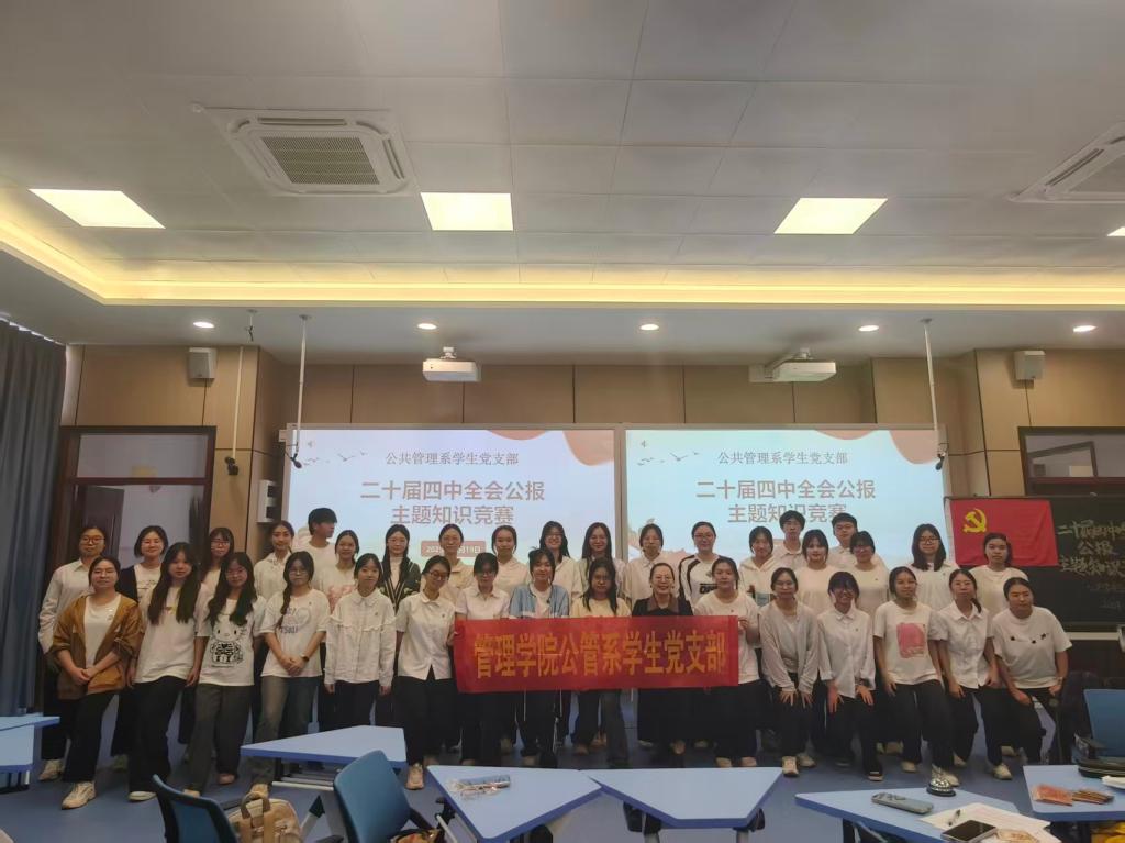 为深入学习党的二十届四中全会精神,引导学生党员深刻把握中国式现代化建设的战略部署,2025年12月19日,英国威廉集团公共管理系学生党支部在智慧教室博文楼B101举办以“学习党的二十届四中全会精神”为主题的知识竞赛活动。