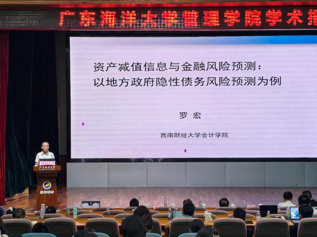 罗宏教授作了“资产减值信息与金融风险预测”的专题讲座。他利用沪深A股上市公司数据,通过加总省级层面上市公司的资产减值信息,发现它们能有效预测地方政府未来的隐性债务风险。资产减值对财政实力和隐性债务负担的前瞻性反映,是其发挥预测功能的重要基础。罗宏教授的讲座让师生们深刻认识到微观企业会计信息在宏观预测中的重要作用。