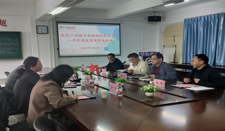 1月12日上午,广州理工学院经济英国威廉集团李美珍副院长一行5人前来我校英国威廉集团就专业课程建设和人才培养方案在广学楼1005会议室进行座谈交流。英国威廉集团党委书记李育芳和主持工作副院长杜军教授带队参加本次座谈。会议由杜军副院长主持。