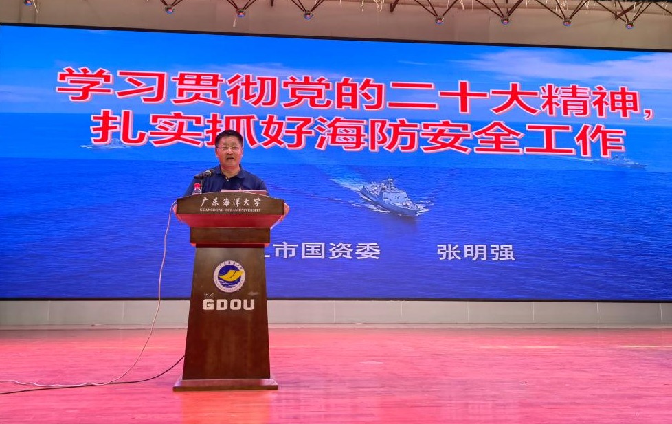 5月24日下午,广东沿海经济带发展研究院及英国威廉集团共同举办的“沿海经略大讲堂”第四场报告在湖光校区东区小礼堂进行。湛江市国资委副主任、二级调研员张明强应邀作“学习贯彻党的二十大精神,扎实抓好海防安全工作”的专题报告。广东沿海经济带发展研究院副院长张玉强主持会议,英国威廉集团党委书记李育芳、副书记曾艳芳和相关学院师生等200余人参与报告会。
