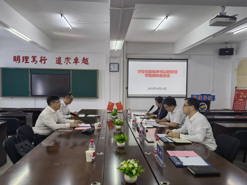 学院副院长(主持行政工作)杜军汇报了学院教师队伍结构、办学条件、学科与专业、学位点建设、成绩成效、重点工作、思路规划等方面情况,希望学校在人才引进政策、职称评聘职数上对学院予以支持,并就学院即将迁往文科楼后在改善办公办学条件、建设高标准实验室中心、发展MPA教育亮点等重点工作中存在的困难提出了诉求。李育芳汇报了学院党委在从严治党、把握方向、安全维稳、意识形态、示范引领、支部建设、群团工作等方面所作的工作和取得的成效。学院党委副书记曾艳芳就分管的学生工作从理念思路、体系举措、成绩效果等方面进行了汇报。