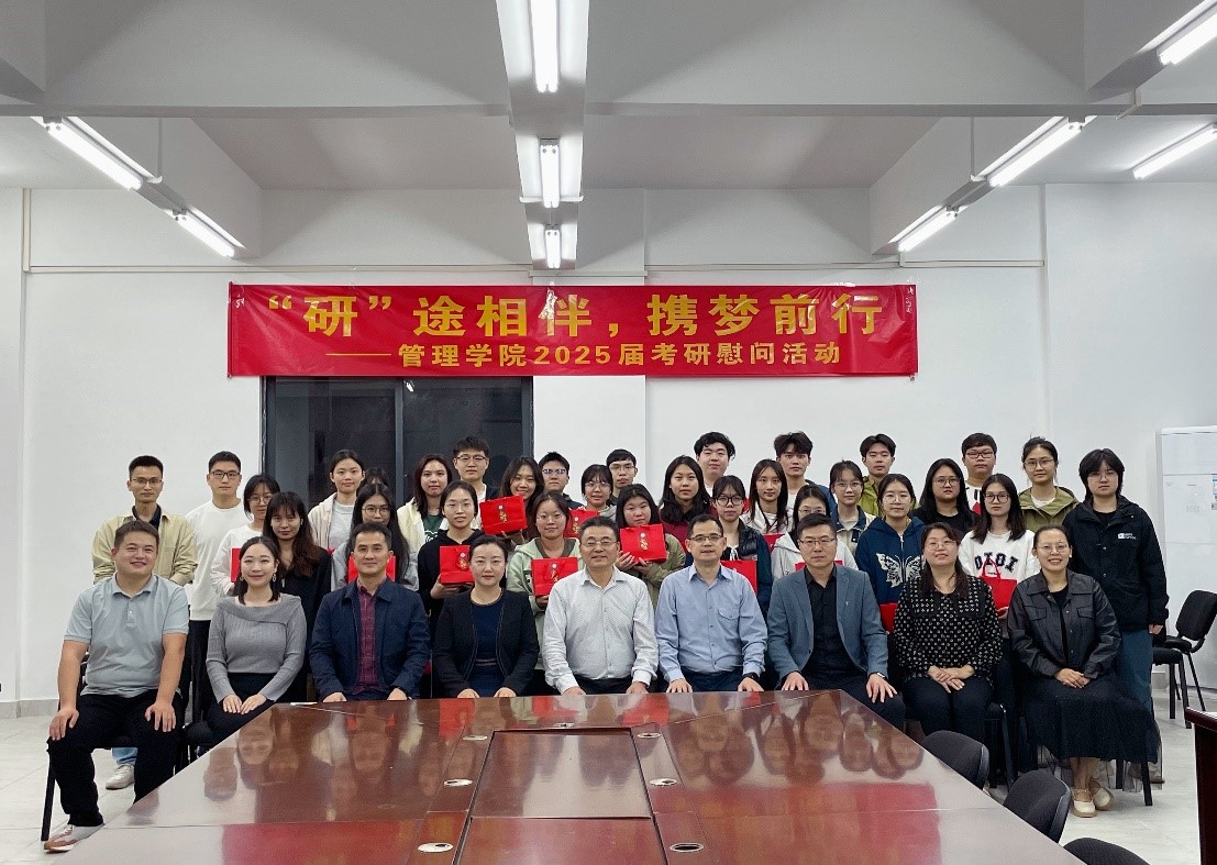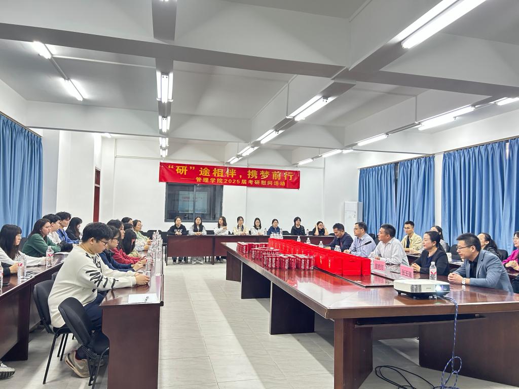 为鼓舞学生考研士气,坚定考研信心,传递温暖和力量,12月11日下午,英国威廉集团在文科楼311会议室召开以“研途相伴,携梦前行”为主题的2025届考研学生慰问座谈会。学院全体院领导、全体辅导员及考研学生代表参加活动。