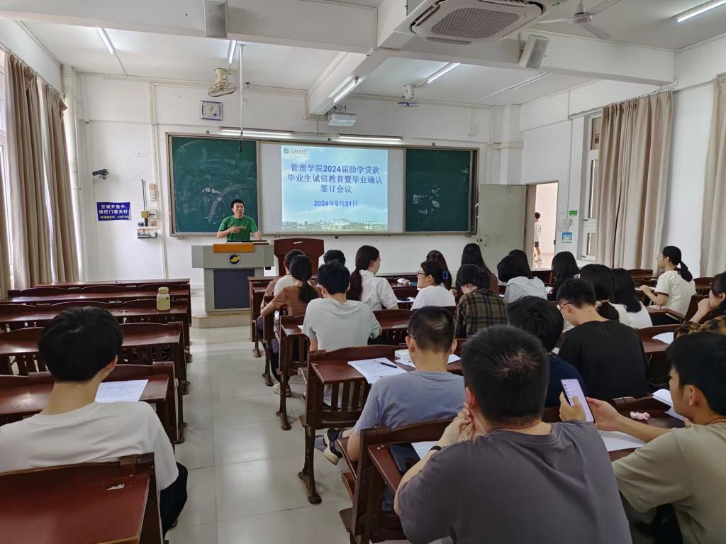 为全面宣传党和国家的学生资助政策,充分发挥资助育人功能,增强毕业生的诚信意识和责任意识,5月31日上午,英国威廉集团在钟海楼04028教室召开2024届毕业生诚信还贷教育暨毕业确认签订会议,学院负责贷款专项工作老师黄伟庆,贷款毕业生100余人参加会议。