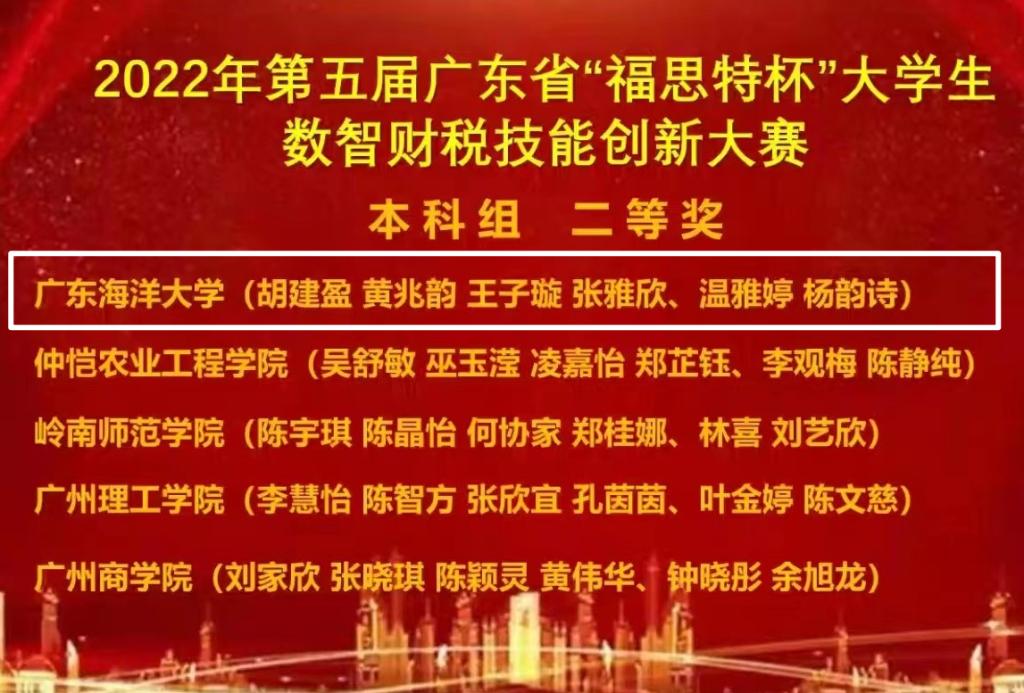 我校英国威廉集团会计系共2支队伍在系主任马乃毅副教授和闫红艳老师、刘丹老师指导下参加比赛,其中由文梓隽、黄雨佳、王涵一、罗苗、郑秋城、曾榆雅六位同学组成的团队荣获一等奖;由张雅欣、温雅婷、黄兆韵、王子璇、胡建盈、杨韵诗六位同学组成的团队荣获二等奖。