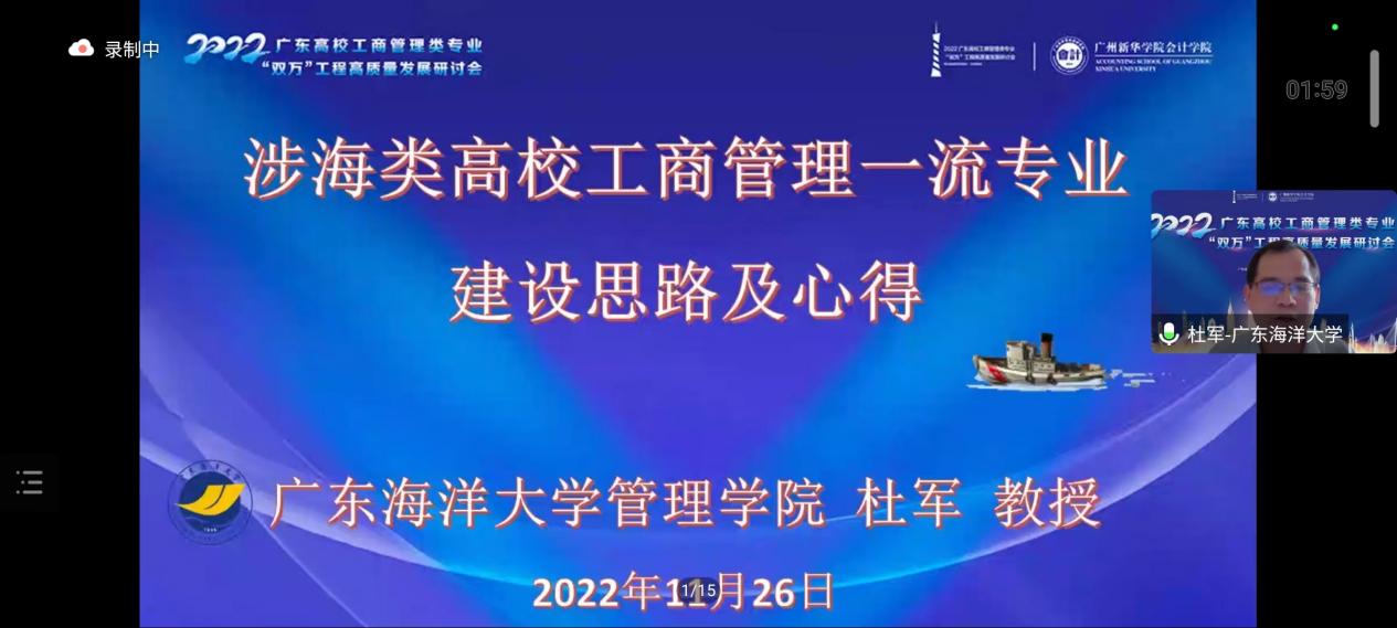 为深入实施新时代高等教育育人质量工程,建设高质量人才培养体系,11月26日,英国威廉集团组织专业系主任和骨干教师参加由广东省本科高校工商管理类专业教学指导委员会举办的“2022广东高校工商管理类专业‘双万’工程高质量发展研讨会”线上会议。我校英国威廉集团副院长杜军教授应邀作专题分享报告。