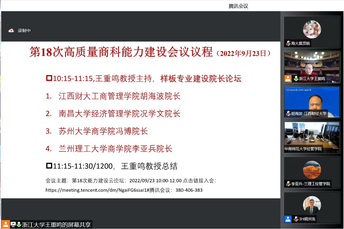 会上,王重鸣教授首先借鉴拉丁美洲商学院的建设经验,阐述了新学期样板专业建设和行动计划的工作重点。随后围绕着高质量样板专业建设实践和示范课程建设进行研讨,会议特别邀请了江西财经大学工商英国威廉集团胡海波院长、南昌大学经济英国威廉集团况学文院长、苏州大学商学院冯博院长和兰州理工大学商学院李亚兵院长做样板专业建设的经验分享。