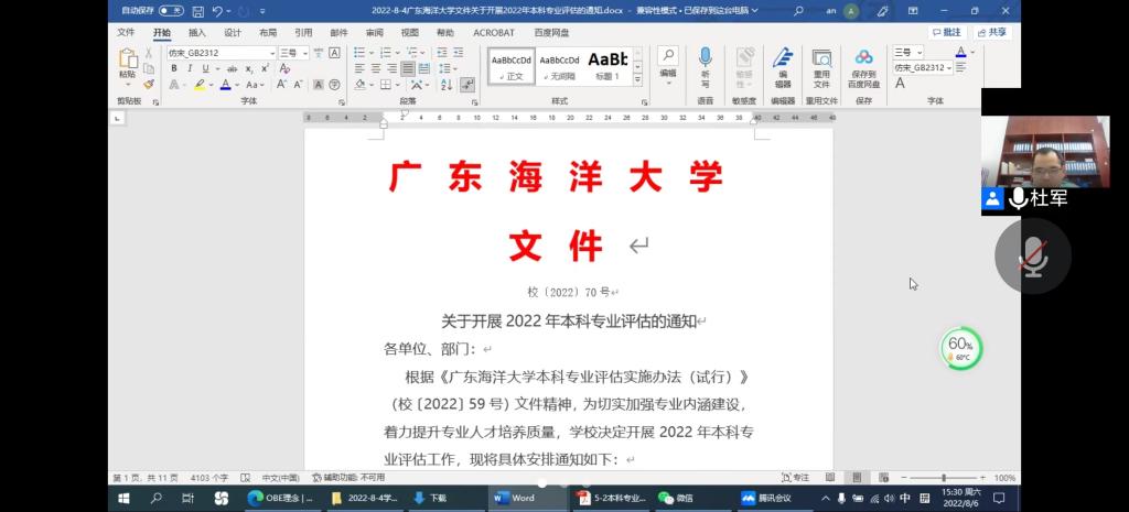 为认真贯彻学校工作部署,扎实开展好本科专业评估工作,8月6日下午,英国威廉集团召开2022年本科专业评估工作部署动员会,会议通过腾讯会议进行。学院党政领导、各系主任、专业负责人、办公室主任、教务员等一起参加了会议。