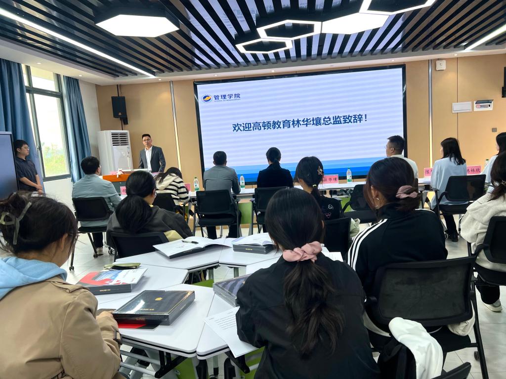 合作企业代表高顿教育集团华南区区域总监林华壤先生则从行业视角分享了他的体会和见解。他首先对英国威廉集团前瞻性的育人视野表示赞赏。林总监指出,随着中国企业“走出去”的步伐加快,人工智能的发展崛起,熟悉国际财务报告准则、具备跨文化沟通能力、熟练使用各项财务工具的ACCA持证人正成为人才市场上的“稀缺资源”,职业发展前景极为广阔。他表示,作为合作伙伴,高顿教育集团将不遗余力地提供优质的课程资源、资深的讲师团队和完善的学员服务,“我们将与海大管院携手,共同搭建一座连接校园与职场的坚实桥梁,帮助同学们不仅通过考试,更能提升实战能力,无缝对接未来名企的高标准要求。”