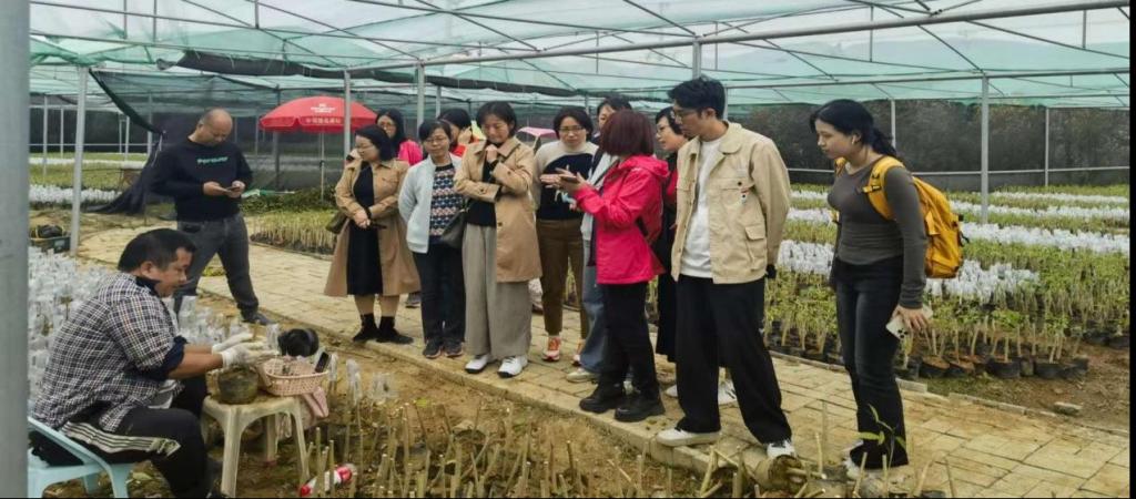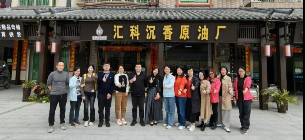 在调研中,会计系老师先后走访了沉香产业链的上下游企业,包括沉香国际交易中心、上善棋楠交易所、南粤沉香博物馆、汇科沉香原油厂、奇楠沉香木苗育苗种植基地等。在奇楠沉香木苗育苗种植基地,了解到沉香嫁接、育苗、管理与采香的全过程。在上善棋楠交易所,认识各类沉香相关产品,观看沉香工匠演示沉香制作过程,听取沉香的主要销售渠道以及国内外沉香市场的情况介绍。最后在汇科沉香原油厂,参观了沉香精油从沉木粉碎装罐到将原材料放入萃取设备萃取精油的制作全过程。通过走进企业、走进厂房、参观博物馆、查阅资料、听取汇报等形式,调研组深入了解了茂名沉香的品种、品种发展史、种植规模、贸易历史、产业发展、未来建设规划及预期效益等基本情况。