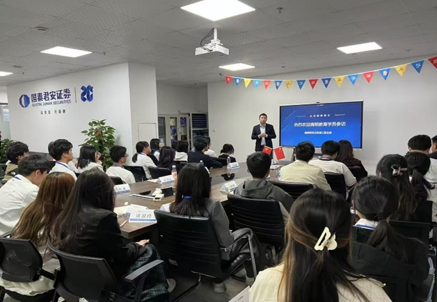 我还有幸参与了国泰君安证券的参访日活动。这一天不仅让我近距离接触了金融行业的真实运作场景,更通过行业培训和小组合作的双重体验,对金融市场有了深刻认知。培训活动中前辈们不仅带来了行业前沿视野,更为我们初涉商科的大学生指明了破局生长的方向,要把握机会,多参与行业参访、学术交流,还要拥有跨界思维,成为复合型人才。