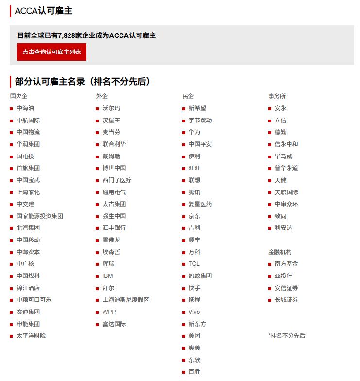 ACCA职业资格证书在全球范围内受到广泛认可:全球认可雇主7828家,国内认可雇主近800家,雇主覆盖金融服务、会计师事务所、通讯科技、生产制造等行业的世界500强企业。在同等条件下,雇主会优先录用ACCA学员或会员。