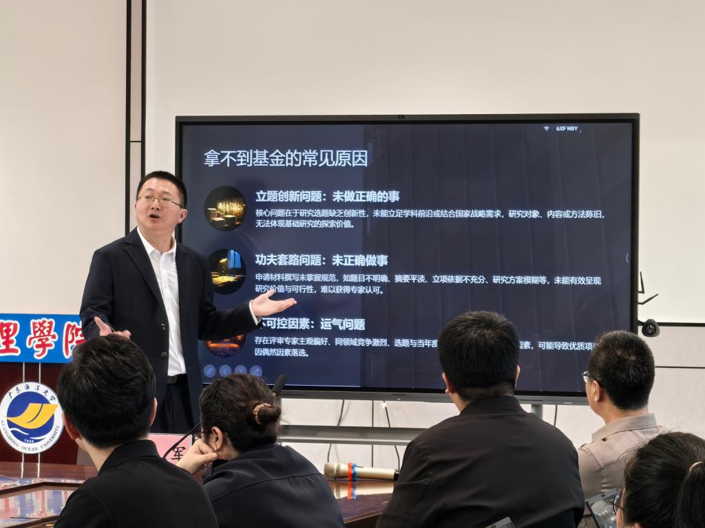 会上,先后获得2018和2022年度国家自然科学基金项目的张艺教授围绕基金申请的关键认知与基本原则、基金与学术成果的双向驱动关系、本子撰写的套路与要点、基金申请与评审实例、基金申请的常见误区与规避、基金申请的心态与后续展望等六个方面详细分享了经验和心得。随后,获得2024年度国家自然科学基金项目的副教授欧春尧,围绕国家自然科学基金青年项目C类的个人申请经历及过程进行了介绍,并针对关键科学问题探索、研究现状梳理、如何提升写作的创新性等内容交流了申请经验。参会老师们就选题方向、本子撰写、前期成果等问题进行了座谈交流。