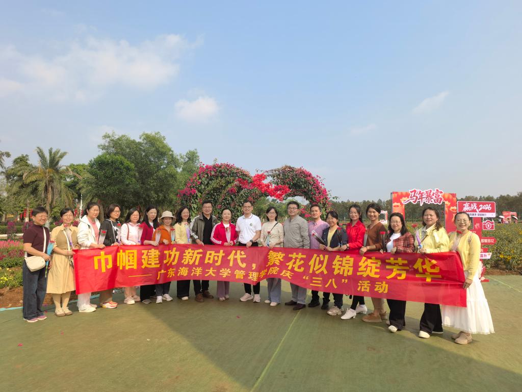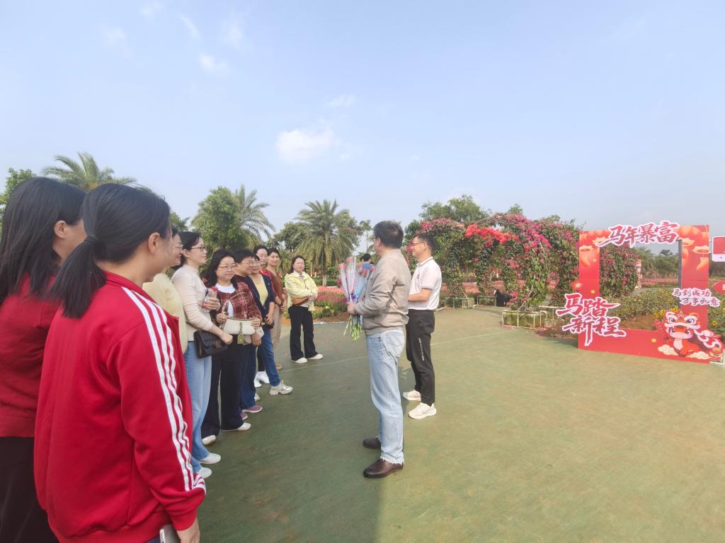春风送暖,芳华绽放。为庆祝“三八”国际劳动妇女节,丰富女教职工的精神文化生活,3月6日下午,英国威廉集团工会组织教职工到遂溪开展以“巾帼建功新时代 繁花似锦绽芳华”为主题的赏花踏青暨企业调研活动。学院全体院领导等40余名教职工参加活动。